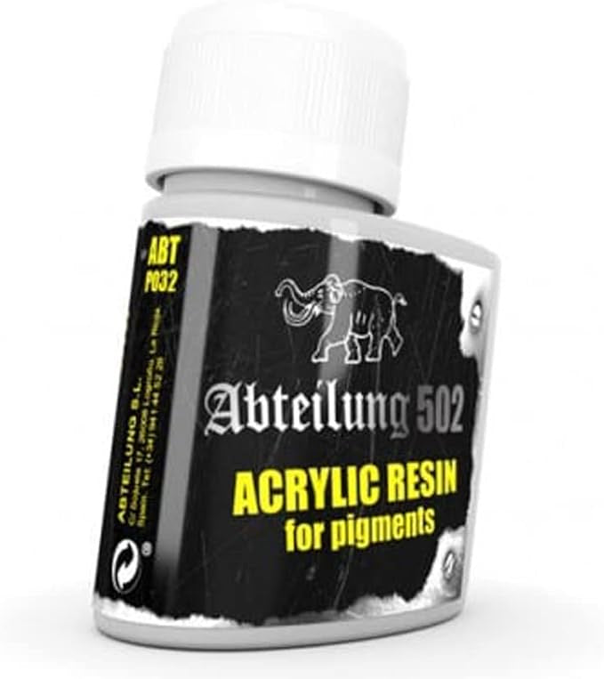 Acrylic Resin for use with pigments in model weathering. Mix with weathering pigments and plaster to add thick deep muddy effects to your model vehicles. This product will dry slowly and is hard to remove once set. It also can be used like glue although It is not white glue.